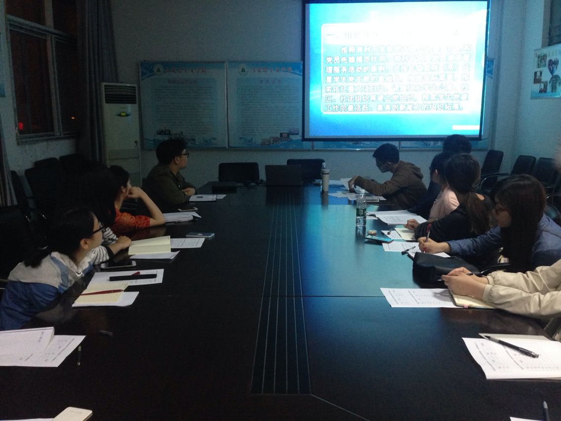 (通讯员 范梦悦)4月19日晚上7点,本科生第一党支部党员大会在学院五楼会议室召开。学院党委秘书邹浩及本科生第一党支部成员参加了此次会议。