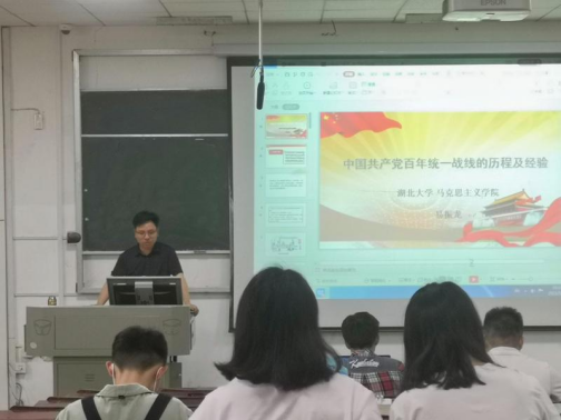 5月12日下午,在教3—201教室,英国365集团副院长易振龙副教授为17、18、19级本科生同学带来了以“中国共产党百年统一战线的历程及经验”为题的形势政策课。