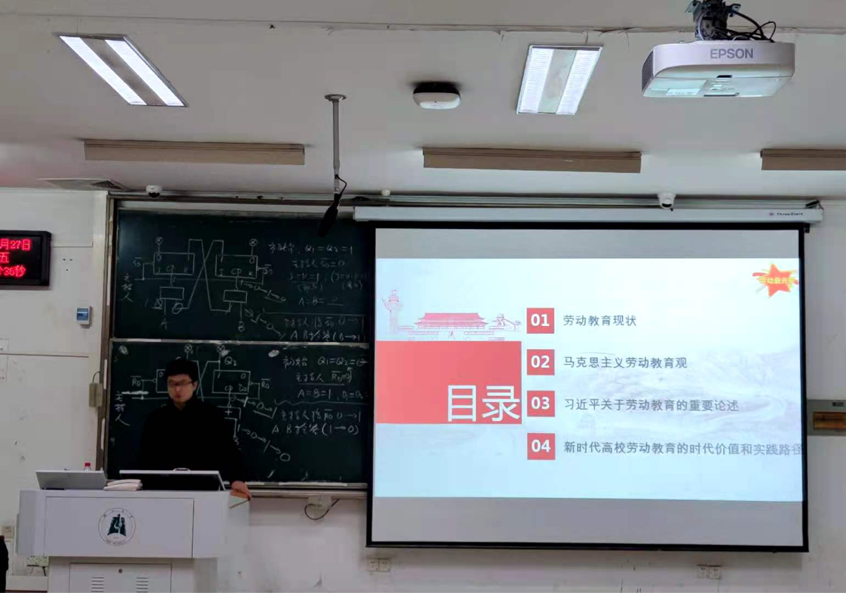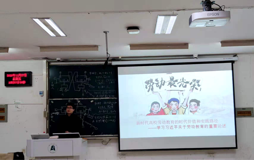 向杨老师重点给同学们分析了我国当前劳动教育堪忧的现状:当前社会劳动教育正在被淡化弱化,社会劳动教育缺失,家庭劳动教育严重缺位。以劳动节为例,曾经设立劳动节的初衷是肯定和褒扬劳动和劳动者的价值;而如今的劳动节却已然变了味,劳动节里再无劳动,五一劳动节变成了狂欢周。然后给同学们介绍了马克思主义劳动教育观,肯定了劳动的重要性和时代价值。然后带领同学们学习了习近平总书记“为什么要建设劳动教育”、“建设什么样的劳动教育”、“怎么样建设劳动教育”三个方面的重要讲话,最后突出强调了当前社会高校劳动教育的重要价值以及实现途径。