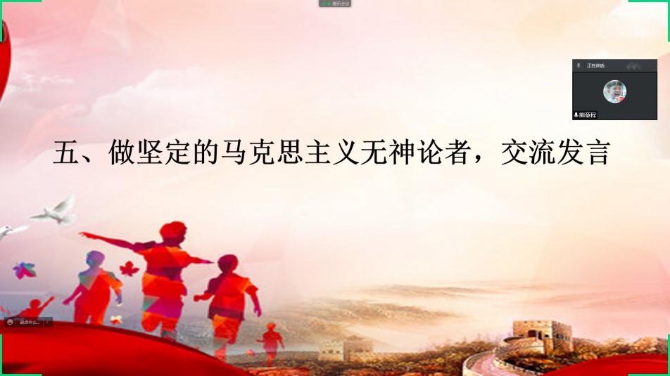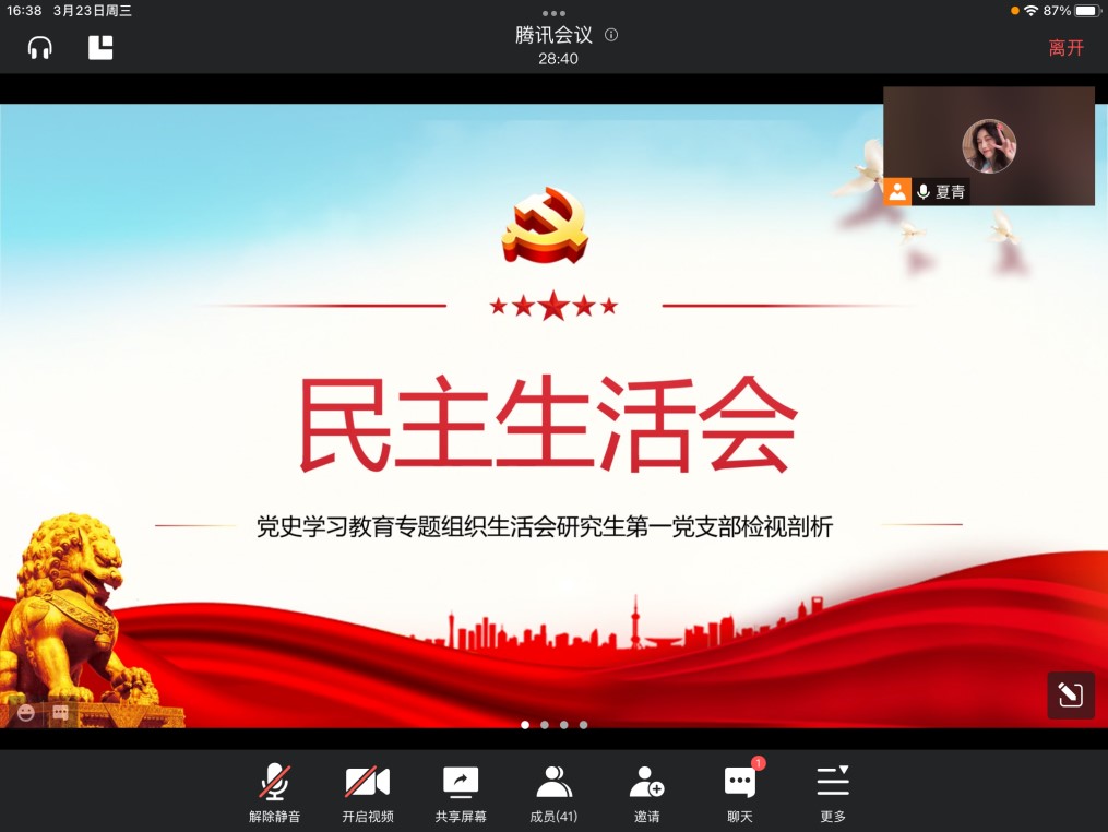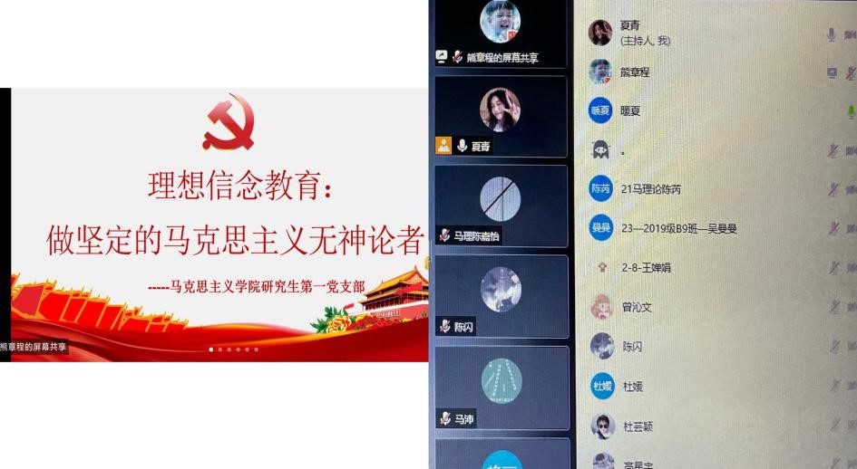 3月23日下午,英国365集团研究生第一党支部利用腾讯会议在线上召开以“做坚定的马克思主义无神论者”为主题的三月份主题党日活动暨2021年度组织生活会、民主评议会。支部书记夏青主持会议。