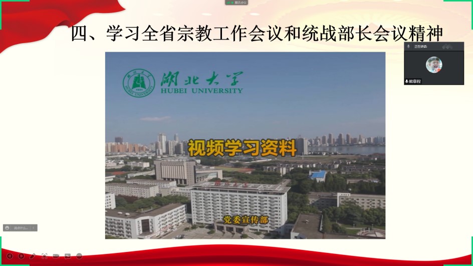 支部全体成员在夏青同志的带领下重温入党誓词、交纳党费,集体学习党章第二章《党的组织制度》第十七条、第十八条,通过视频方式学习全省宗教工作会议和统战部长会议精神。