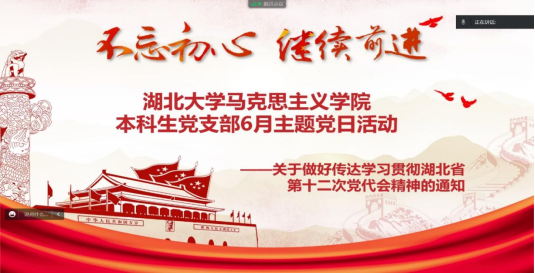 6月29日,英国365集团本科生党支部开展了题为“学习贯彻湖北省第十二次党代会精神”的线上主题党日活动。本次会议由宣传委员刘欣悦主持。