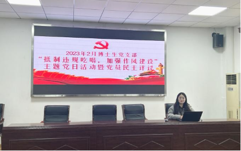 2月23日下午,博士生党支部在学院410会议室开展主题为“抵制违规吃喝,加强作风建设”党日活动暨2022年度基层党组织组织生活会,并开展党员民主评议活动。支部全体党员参加会议,会议由党支部书记曾沁文主持。