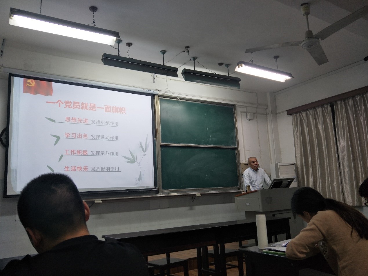 开班典礼结束后,汤书记为学生们做了一场主题为《一个党员就是一面旗帜》的报告,分别从“思想先进”、“学习出色”、“工作积极”、“生活快乐”四个方面说明党员所发挥的引领作用、带动作用、示范作用和影响作用,在具体讲授过程中,还通过形象生动的小故事,活跃了课堂气氛,深化了同学们对党员的理解与认识。
