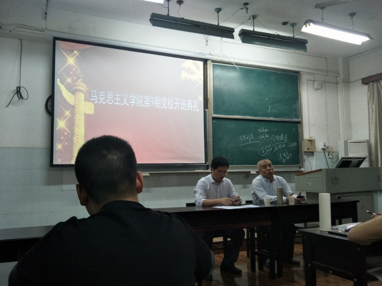 在全体成员齐唱国歌的庄重氛围中党校开班典礼正式开始,汤德森书记首先进行讲话,向同学们讲述入党的原因,强调党校纪律,并教导同学要端正学习态度、讲求学习方法、真正做到将党课所学到的知识与业知识的结合。随后,王雄老师再次强调党校的纪律与态度问题,并耐心为同学解答疑惑。开班典礼尾声,在全体成员共唱《国际歌》的歌声中第9期党校开班典礼圆满落幕。