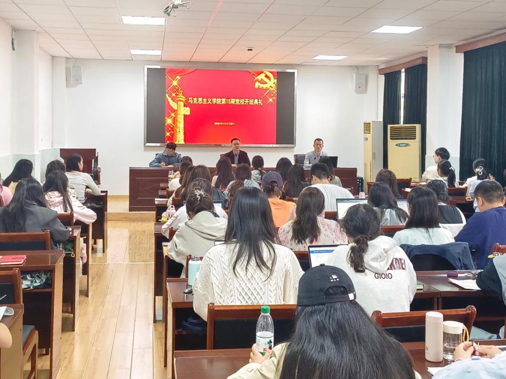 2024年11月13日,英国365集团第15期党校开班典礼在二号教学楼410报告厅隆重召开,学院党委副书记、党校副校长周杰,党委秘书邹浩,团委书记冷自衍和全体学员参加此次开班仪式。