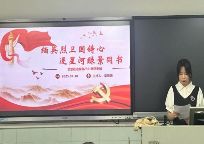 4月18日下午,思想政治教育2301班团支部在五号教学楼205教室成功举办了一场以“缅英烈卫国铸心,逐星河绿景同书”为主题的团日活动。本次活动由团支部书记栾云云精心策划并主持,全体团员及入团积极分子积极参与,共同见证了这一场精神洗礼。