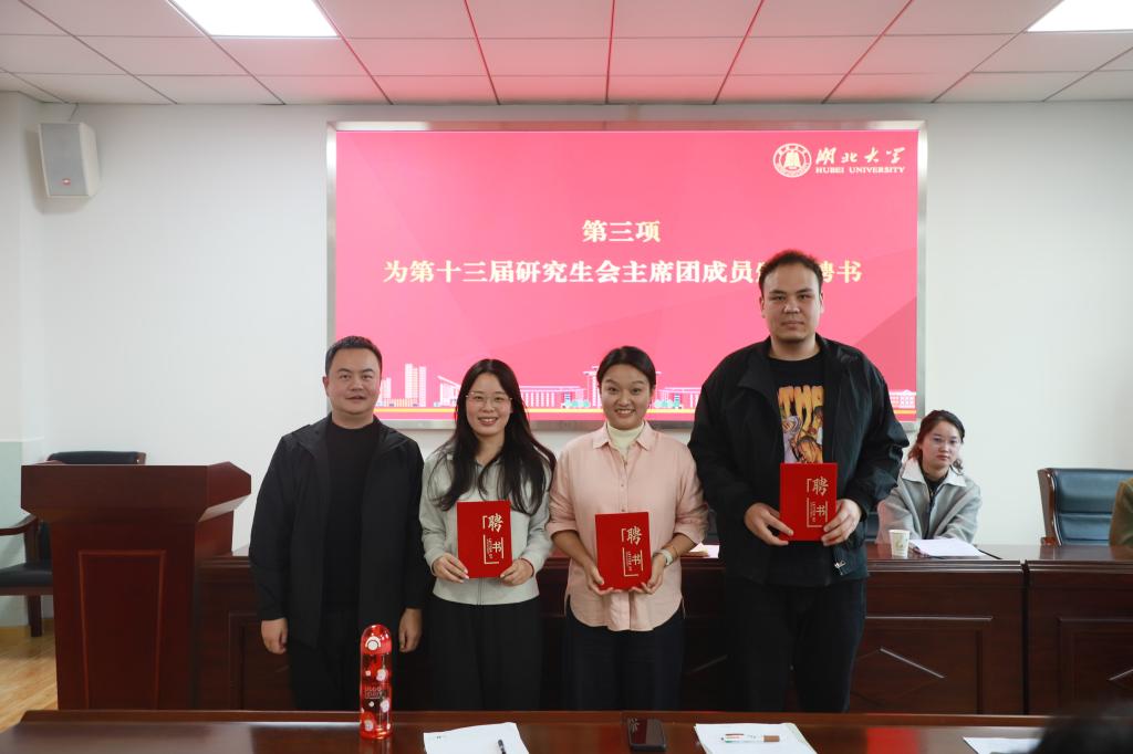 (通讯员 文/李紫茜 图/张怡 周雨漫)2025年10月22日,英国365集团第十三届研究生会聘书颁发仪式暨第十四届研究生会首次见面会在学院410会议室举行。学院党委副书记周杰、辅导员杜晓雪出席会议,第十四届研究生会主席赵姝斐主持会议。