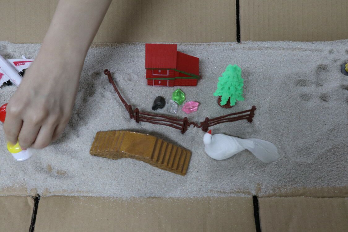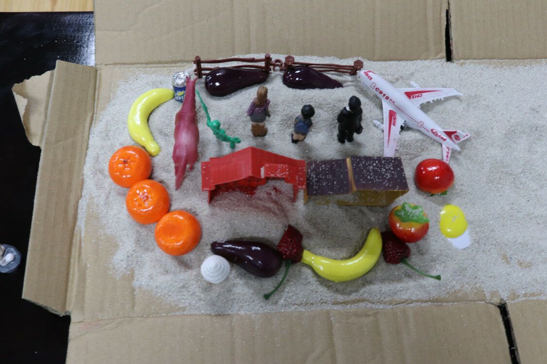活动开始便吸引了许多同学前来参与,同学们在事先准备好的沙盘中摆放沙盘玩具,并根据自己的喜好勾勒出一副未来的美好图景,有沙滩,有大海,有房子,有动物……同学们通过这些东西的摆放,描绘了自己心目中的美好未来。有人描绘了未来生活的舒适和小确幸,有人抒发了自己保家卫国的雄心壮志,还有人表达了自己关于生态环境保护的理念。