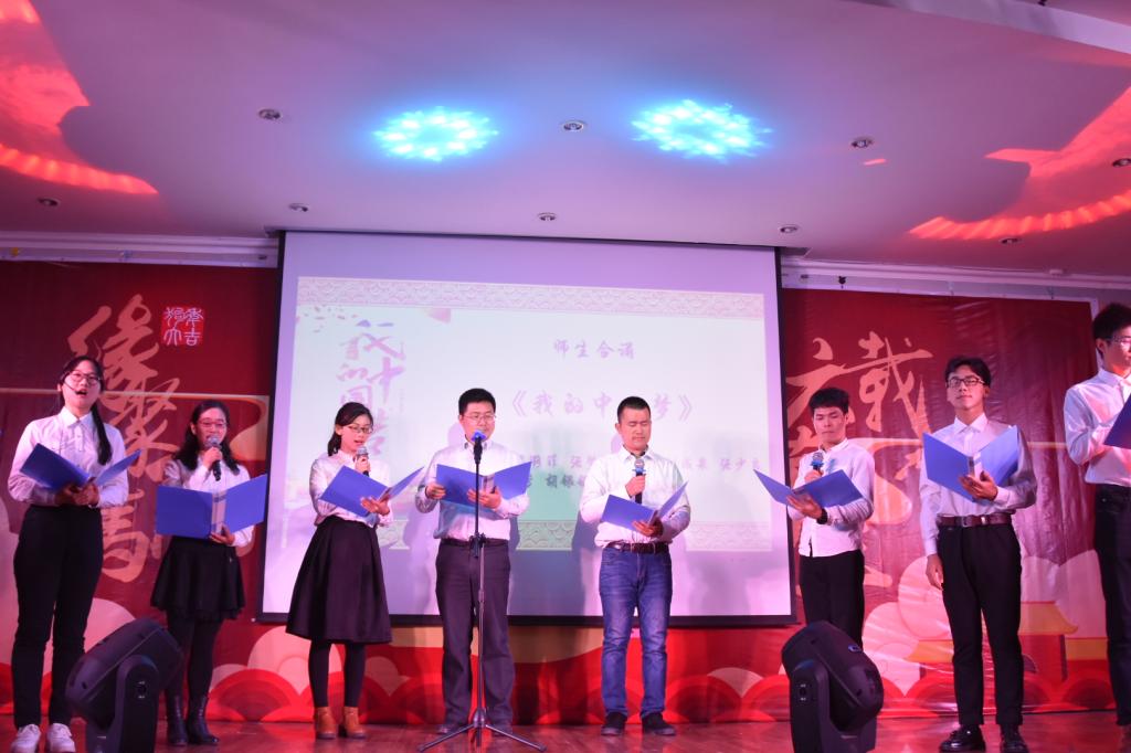 学院的元旦晚会一直秉持着“马院一家人”的理念,真正做到了师生大联欢,老师们也为大家带来了很多精彩的节目。郭劲松老师作为神秘嘉宾上台献唱了《贝尔加湖畔》,唱歌之前他还笑着说:“每年都请我来当神秘嘉宾,我都神秘好几年了。”汤书记也为同学们带来了一首《等你等了这么久》,并说:“不管多少年,你们以后在哪里,我都在马院等你们。”被大家亲切的称为“贺爷爷”的贺祥林老师用湖南话模仿了毛主席的演讲“希望寄托在你们身上”,并为大家献唱了几句,向同学们表达了自己的殷切期望。一首慷慨激昂的师生合诵《我的中国梦》点燃的观众们心中浓浓的爱国之情。最后,晚会在马院硕士研究生以及郭劲松老师合唱的《难忘今宵》中落下帷幕。