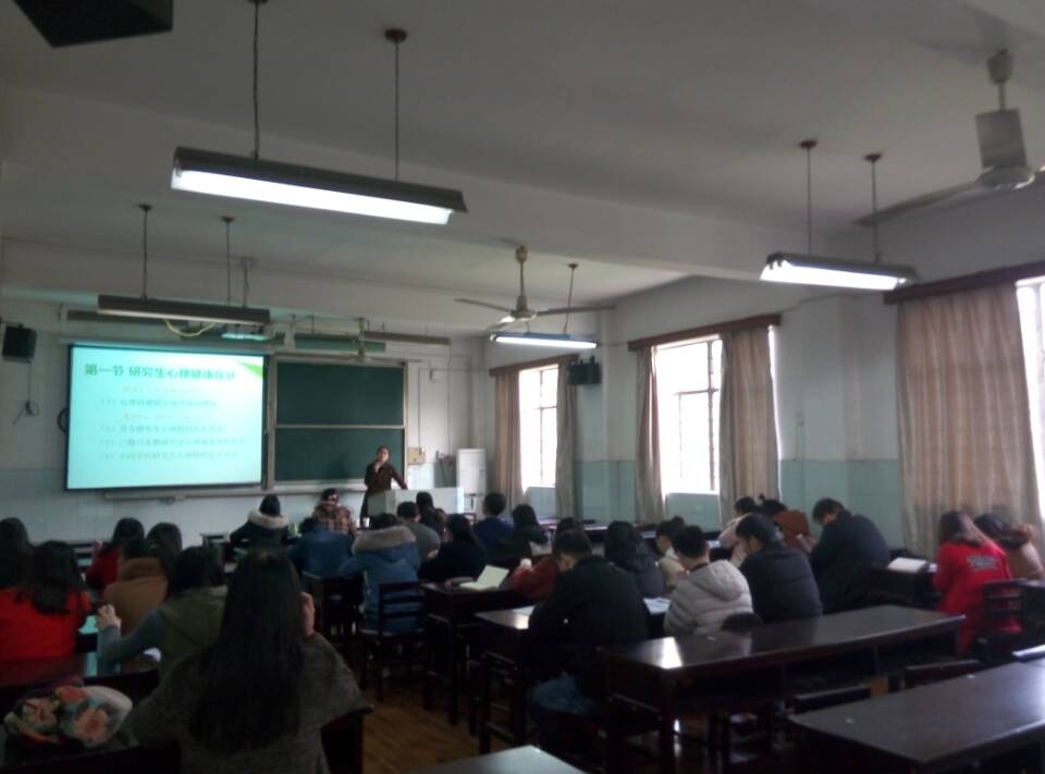 为丰富研究生课余生活,提高研究生心理健康知识水平。我校心理健康研究中心张玥老师于11月23日下午在教2-210会议室,做了题为《让心放轻松》的心理健康知识讲座。我院17级全体研究生聆听了此次讲座。