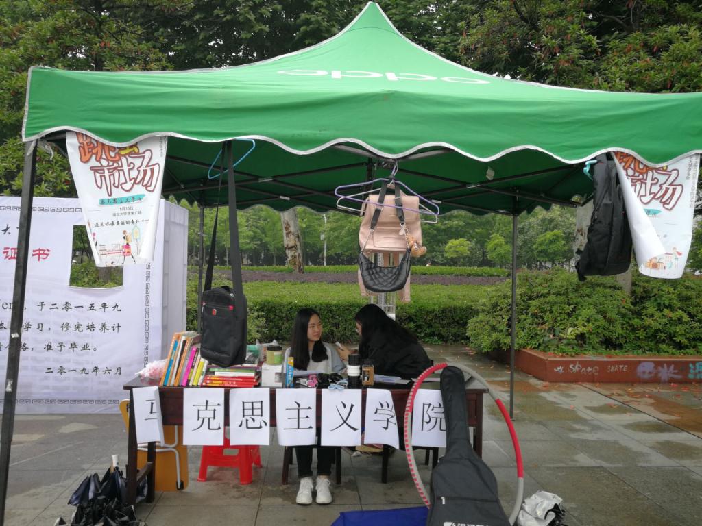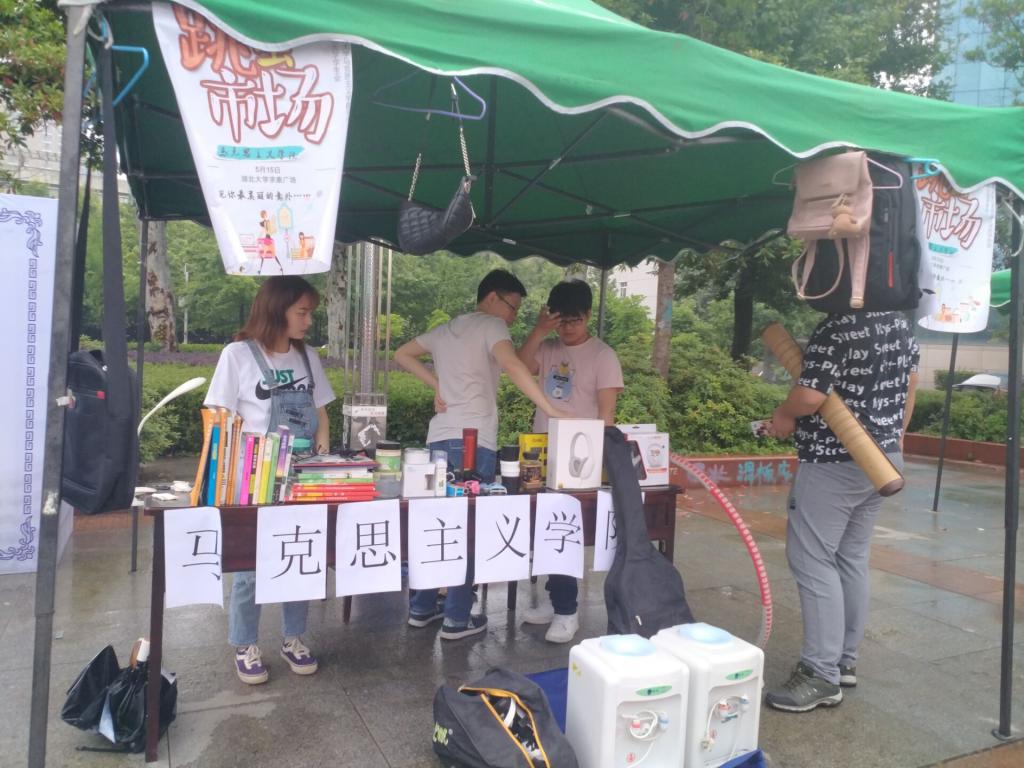 活动结束后,马院团学联学工部的梅晓语说到:“5月15日开展的跳蚤市场活动,我作为负责人之一,一整天下来感受颇深。早上空中还飘着雨,准备工作就马不停蹄地开始了,随着天空放晴,广场上人流量开始多起来,我们院摊位的物品也陆续有人来光顾。其中有几位外国友人对一个饮水机和小米耳机产生了兴趣,我们便开始了“坎坷”却十分愉快的交谈,最终成功有了第一单“外贸”生意。另外,许多班上同学和学长学姐都前来支持帮助,让我感到十分暖心,最终这次活动圆满结束。跳蚤市场活动不仅实现资源的有效利用,也让许多同学以合理的价格买到了心仪的物品,这在我看来是一次十分有趣也富有意义的活动。”