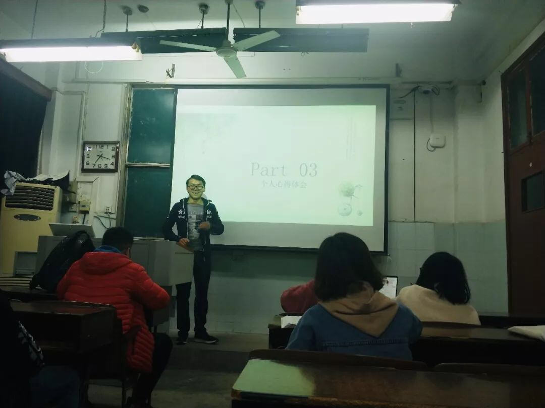 2017级思想政治教育专业本科生喻文婷也分享到:“他们的ppt展示令我印象深刻,无论是排版、字体、字符大小、每一页的容量都处理地十分好,讲稿也十分流畅、逻辑清楚、停顿有序。我感受到自己与他们的差距,也觉得名企偏向于985的学生是有道理的,他们的资质和能力确实配得上。原来学霸们在名校中并没有放松,他们的课外阅读量很多,为课业学习投入的时间和精力也很多,我们应该要更加勤奋,以他们为榜样,只有更加努力,才有机会追赶上他们的脚步。”