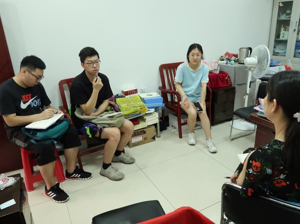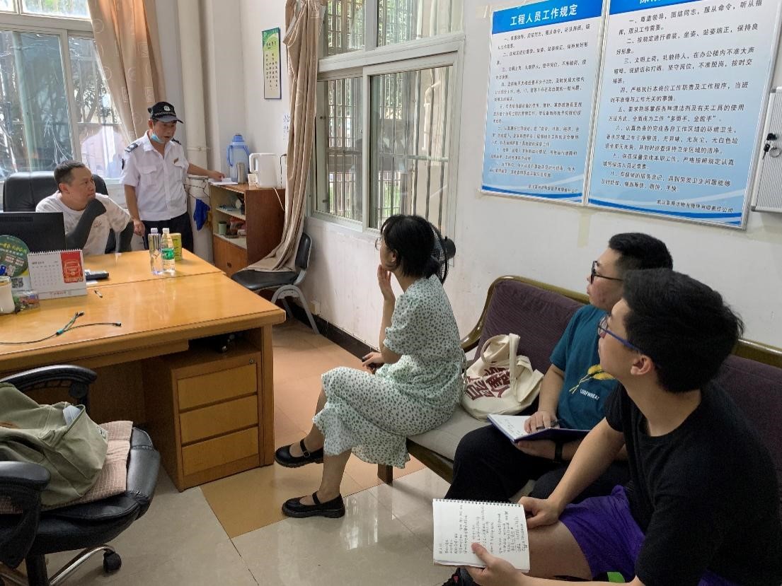 (图为团队成员与忠诚教师公寓物业周经理进行访谈)
