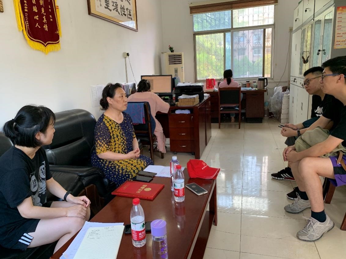 (图为团队成员与湖大社区刘书记进行访谈)