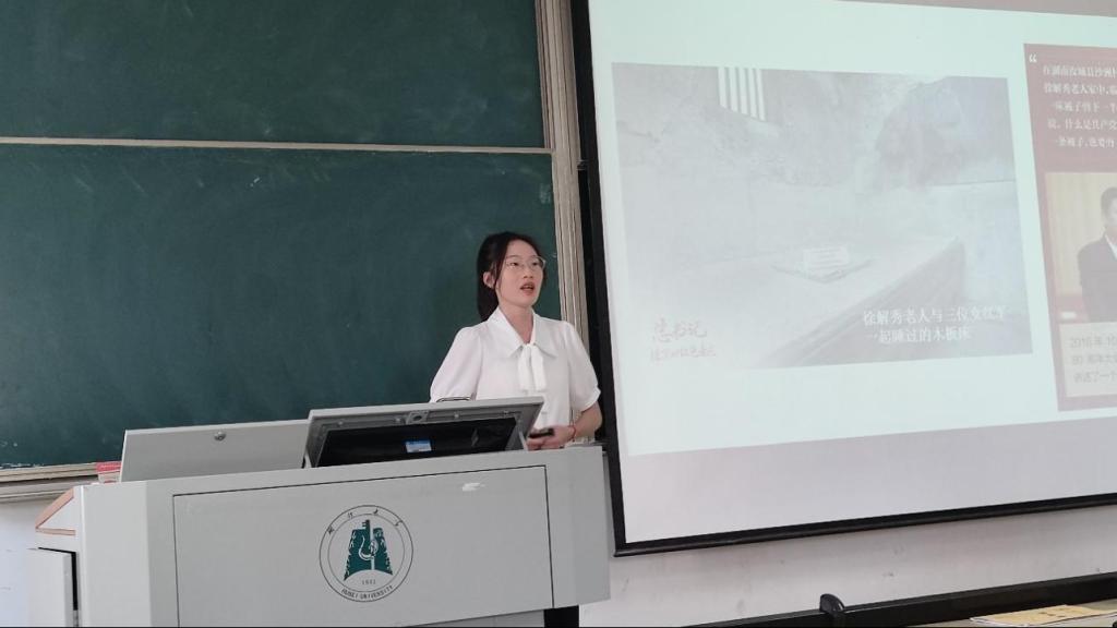 21级学科思政研究生张光凤讲授的是高中政治必修二《经济与社会》“以人民为中心的发展思想”这一内容。她采用一案到底教学法,围绕“半条被子”的故事发生地沙洲村的发展变化,将“以人民为中心的发展思想”的三个核心要义进行分析讲解,引导学生坚守为民的初心、坚定跟党走的信念。