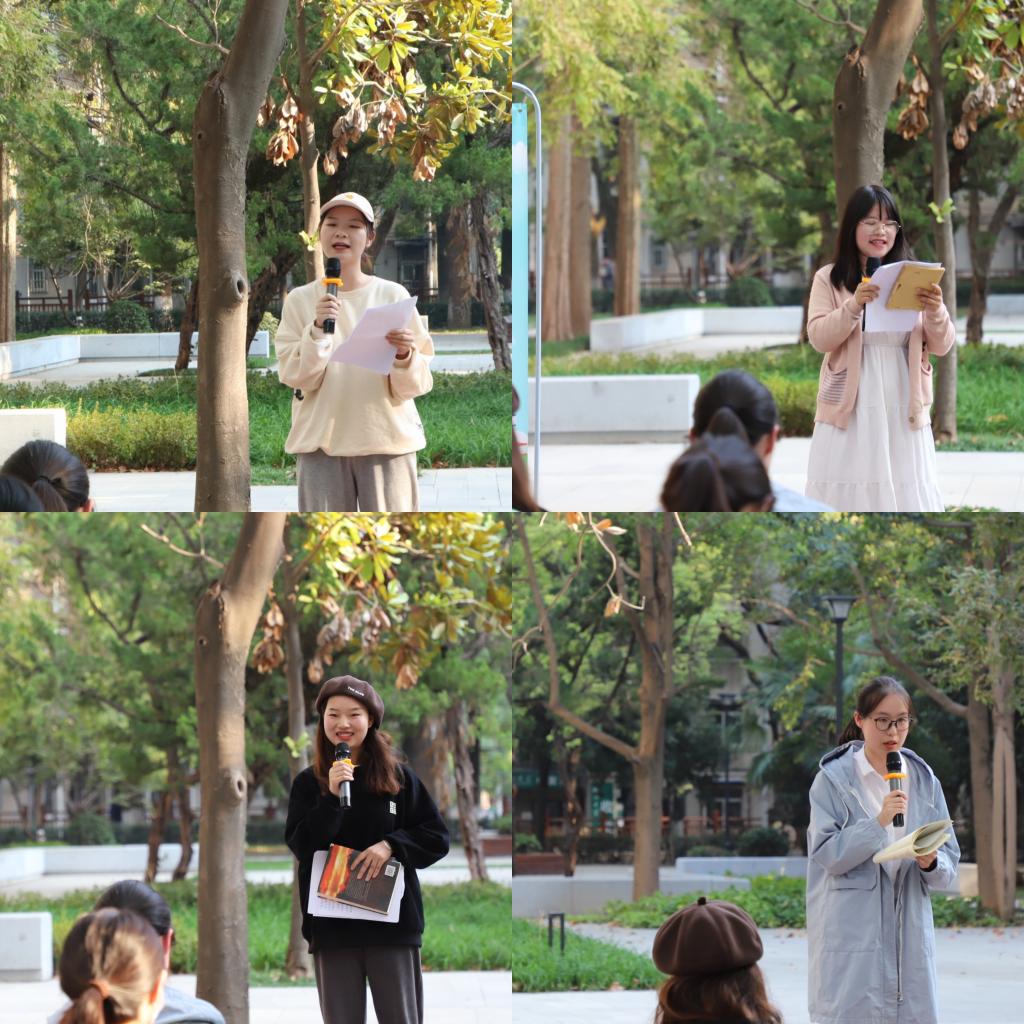 11月10日下午,“书香马院,悦读经典”首场户外读书分享会在温暖、宁静的午后校园中举行。学院团委负责人孙倩、21级、22级马克思主义理论班主任金姣以及21级马克思主义理论专业张雨薇、李海燕,22级马克思主义理论专业赵冬萍、贾凤利四位同学进行了读书分享。21、22级马克思主义理论40余名同学参加,读书会由22级马克思主义理论专业团支书刘全寒主持。