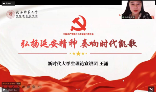 为深入学习宣传贯彻党的二十大精神,培养青年宣讲骨干,做好党的二十大精神青年宣讲工作。2月1日晚7点,我院研究生宣讲团邀请陕西师范大学新时代大学生理论宣讲团开展了一场“弘扬延安精神 赓续红色血脉”主题宣讲交流分享会。英国365集团党委副书记晏妮、英国365集团宣讲团全体成员及陕西师范大学新时代大学生理论宣讲团相关成员参加此次会议。
