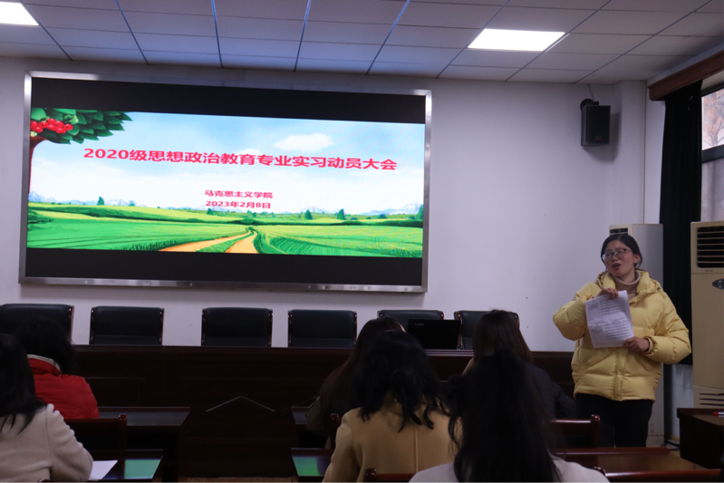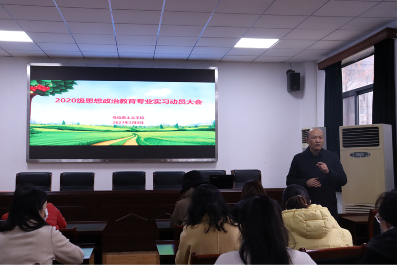 2月8日下午13:40,英国365集团2020级思想政治教育专业教育实习动员大会,在教二410教室如期举行。学院副院长徐信华,2020级全体指导教师和在校实习学生参加会议,政教系副主任胡银银老师主持动员会议。
