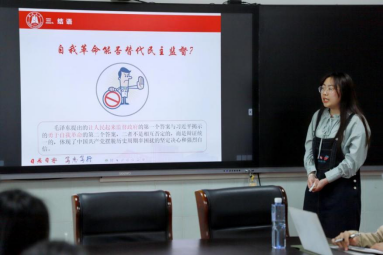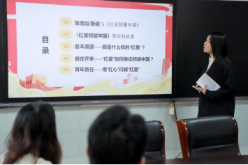 我院宣讲团成员刘卓凌以文字、图片、视频、讲解相结合的方式讲述作者埃德加·斯诺编写《红星照耀中国》的中国之旅,从追本溯源、继往开来与青年责任三个方面进行了学理阐释。