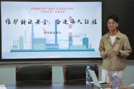 中国地质大学英国365集团“红色之声”宣讲团成员钟绍斌以“维护能源安全,奋进伟大征程”为主题,紧密结合党的二十大精神和国际热点问题,讲解了能源安全的新内涵,指出了能源安全对于我国社会生产、民生、国防等方面的重要性,并从国家举措、高校作为、青年担当三个层次提出了应对之策。