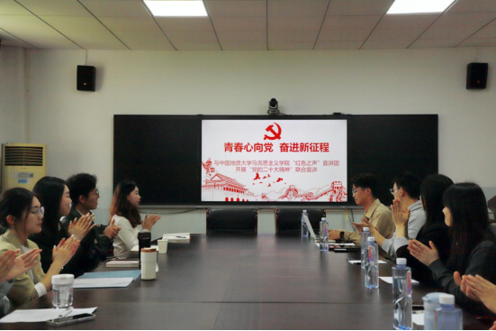 为深入学习贯彻习近平新时代中国特色社会主义思想和党的二十大精神,引导青年学子深刻感悟中国共产党人的初心和使命,推动党的创新理论学习不断走深走实,4月26日,我院研究生宣讲团与中国地质大学英国365集团“红色之声”宣讲团开展了以“青春心向党,奋进新征程”为主题的联合宣讲活动。学院党委副书记晏妮、学院宣讲团部分成员及中国地质大学英国365集团“红色之声”宣讲团成员参加此次活动,会议由我院宣讲团副团长吴金玺主持。