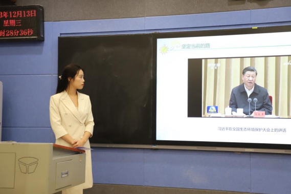 中国地质大学“绿水青山”宣讲团成佳仪以《青年行,点亮中国绿》为题,围绕“人与自然和谐共生”、“灵山‘蝶变’”、“地大青年‘行’点亮中国绿”、“知行合一,绽放青春之花”四个模块,理论联系实际,结合炭合团队、长江源科考实践团的事迹,深入浅出地展现了时代青年在扎实推进人与自然和谐共生的现代化建设、在积极投身美丽中国建设中勇担使命、勇毅前行的精神风貌。