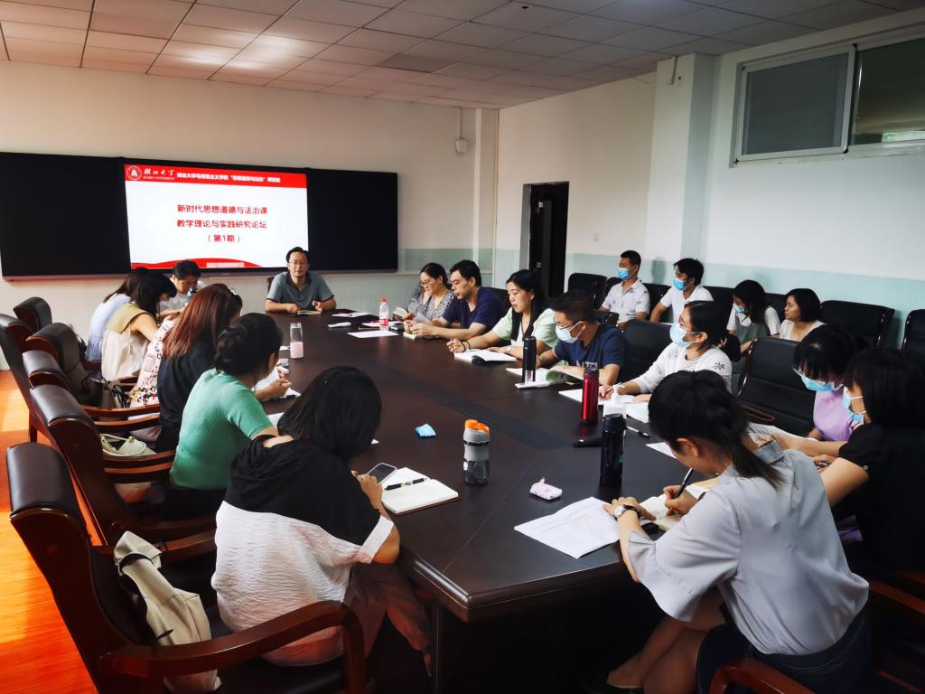 为了更好进行思想道德与法治课的教学,提升教师的教学能力、创新能力,增强教学效果和学生的“获得感”,新学期伊始我院“思想道德与法治”课程组组织举办了“新时代思想道德与法治课教学理论与实践研究论坛”,此论坛旨在围绕新时代“思想道德与法治”课程的教学内容、教学方法、教学模式、教学创新等多方面展开理论与实践的研讨。我院院长熊友华教授出席并致开幕词。