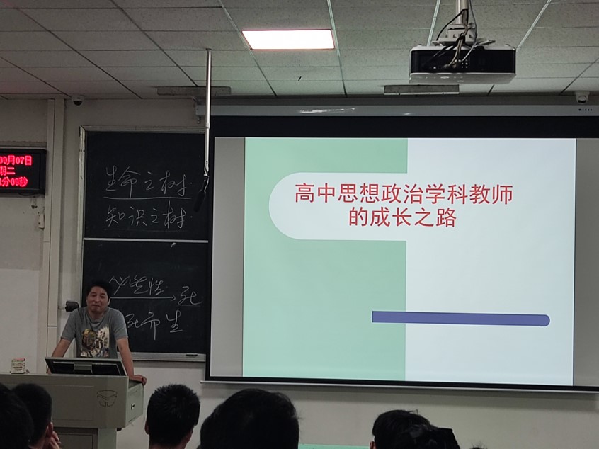郭劲松老师从教师的起源、课内课外的教师身份的转变、教师自身素养的提升和教师意识的培养等方面展开了丰富详细、内容翔实的论述,获得了同学们的高度认可。