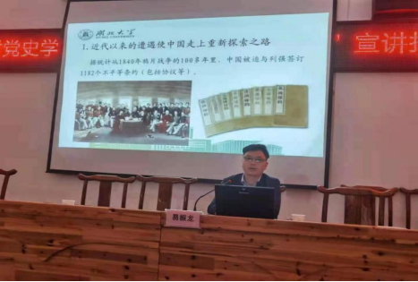 党史学习教育省委讲师团成员、英国365集团院长熊友华教授在向阳湖镇主会场作《学百年党史 聚智慧力量》的辅导报告。报告从为什么学习党史、党史的基本脉络是怎样的、党史给我们的启示三个方面展开,阐释了在百年华诞的重要时刻、历史交汇的关键节点、迈步新征程的开局之年、风险挑战纷至沓来的敏感时期进行党史学习教育的重大意义,梳理了中国共产党救国、兴国、富国、强国的辉煌历程,展现了百年党史的湖北脉动,总结和分析了百年党史的经验启示,深刻解读了“中国共产党为什么能”。