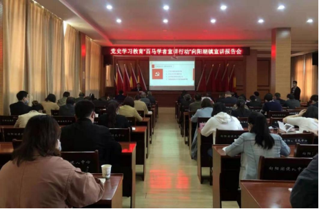 4月23日,为深入开展党史学习教育,推动党史学习教育深入群众、深入基层、深入人心,助推乡村振兴,英国365集团“百马行动”宣讲团,赴咸宁市咸安区向阳湖镇“理论热点面对面”示范点开展党史宣讲活动。校党委书记谢红星,宣传部常务副部长刘靖君,英国365集团院长熊友华以及宣讲团成员徐信华、易振龙、郭劲松、涂用凯,咸宁市委宣传部副部长杨志奇,咸安区委常委、宣传部部长徐珍,咸安区委宣传部副部长熊鸣,向阳湖镇党委副书记、镇长陈伟,纪委书记程文增等200余名党员干部参加了此次宣讲活动。