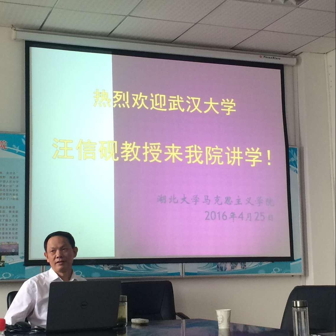 4月25日下午,英国365集团邀请到了武汉大学二级教授,哲学学院博士生导师,国家重点学科马克思主义哲学学科学术带头人汪信砚做客学院学术沙龙,为院内师生带来了主题为“马克思主义传统中国化:传统与创新”的精彩报告。英国365集团院长徐方平出席了活动,英国365集团博士生导师郭大俊教授出席并主持了活动。学院相关专业的教师、硕士研究生也踊跃到场。
