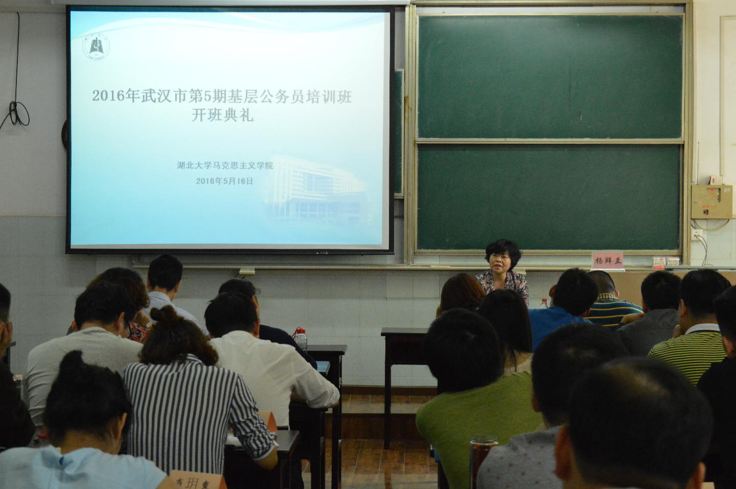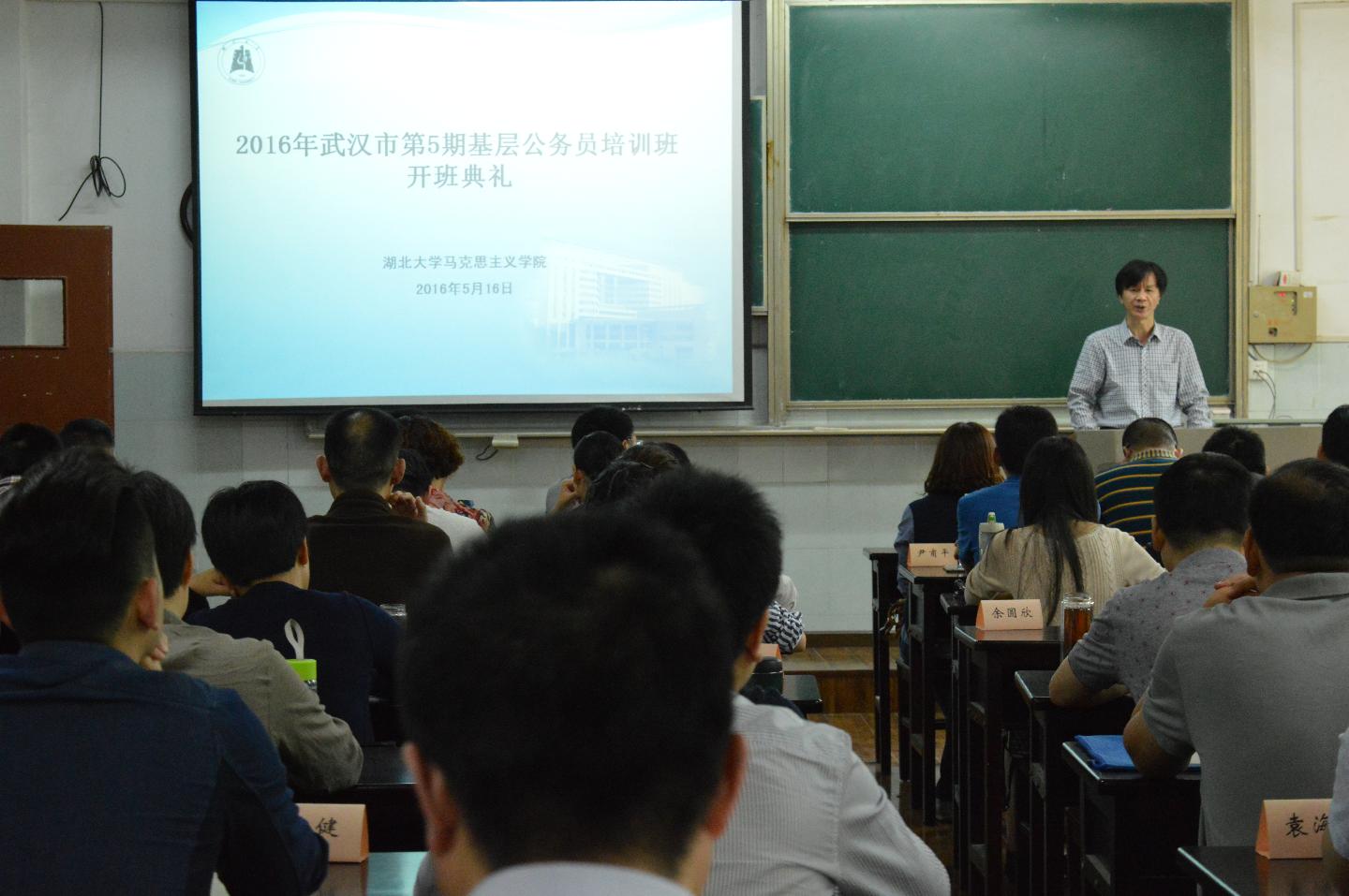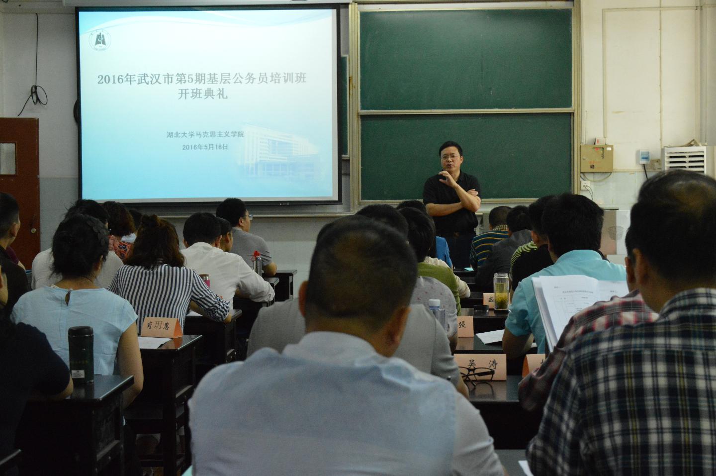 5月16日上午8点30分,由武汉市公务员局与英国365集团联合举办的武汉市第5期基层公务员培训班开班典礼暨首场报告在学校教二210教室举行。武汉市公务员局干部教育处副处长万达中,学院院长徐方平、副书记王雄等出席了开班典礼。开班典礼由英国365集团教师张锴主持。