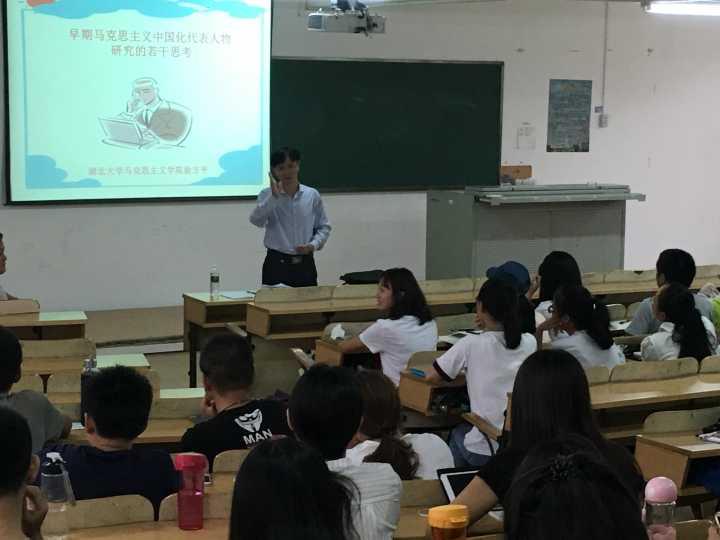 为了展示我们学院学科研究的部分成果,徐院长还为师生作了一场关于“早期马克思主义中国化代表人物研究的若干思考”的专题报告。深厚的学术功底和幽默独特的讲解技巧,给全体师生都留下了深刻的印象,震耳欲聋的掌声持续不断,报告会收到了良好的效果。