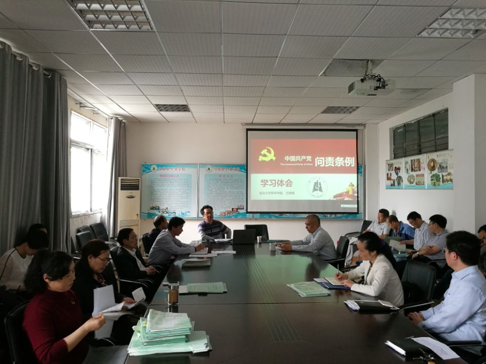 4月19日下午2点,英国365集团第七期“马克思主义论坛”在学院五楼会议室举行,邀请哲学学院党委书记万明明同志为全院教职工主讲“《中国共产党问责条例》学习体会”,学院党委书记汤德森主持讲座。
