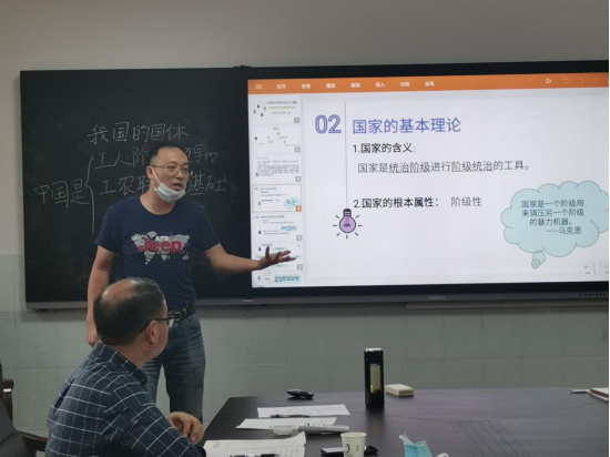 在此次实习指导交流会上,来自2017级思想政治教育专业的5位学生一一上台进行了讲课展示,同学们讲授的内容涉及到高中阶段所学的各本教材的内容,如政治方面的“只有社会主义才能救中国”、“国家的基本理论”、“原始社会的解体和阶级社会的演进”,经济方面的“多彩的消费观”,哲学方面的“把握世界的规律”等等。初登讲台的同学们难免紧张,也存在一些不足之处,但都进行了精心的准备,讲授内容比较充实。