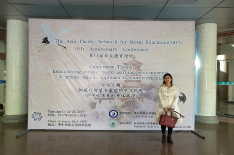 2017年4月21日—24日,由华中师范大学教育学院德育研究所承办、南京师范大学教育科学学院道德教育研究所协办的国际学术研讨会“亚太地区道德教育论坛”(the Asia-Pacific Network for Moral Education,简称APNME)第11届年会在华中师范大学科学会堂举行。英国365集团讲师、湖北青少年思想道德教育研究中心主任助理翟艳芳博士参加了本次国际学术研讨会。