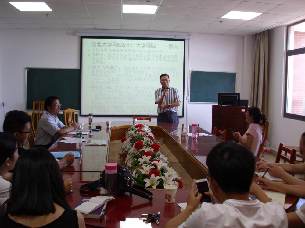 长江大学英国365集团非常重视这项工作,学院领导和班主任与杨海军老师进行了交流,组织13级思想政治教育专业学生听取了杨海军老师对我院学科建设、师资队伍、人才培养等基本情况所作的介绍,特别向师生就研究生招生和就业状况进行宣讲,并与他们进行互动,回答学生提出的相关问题。