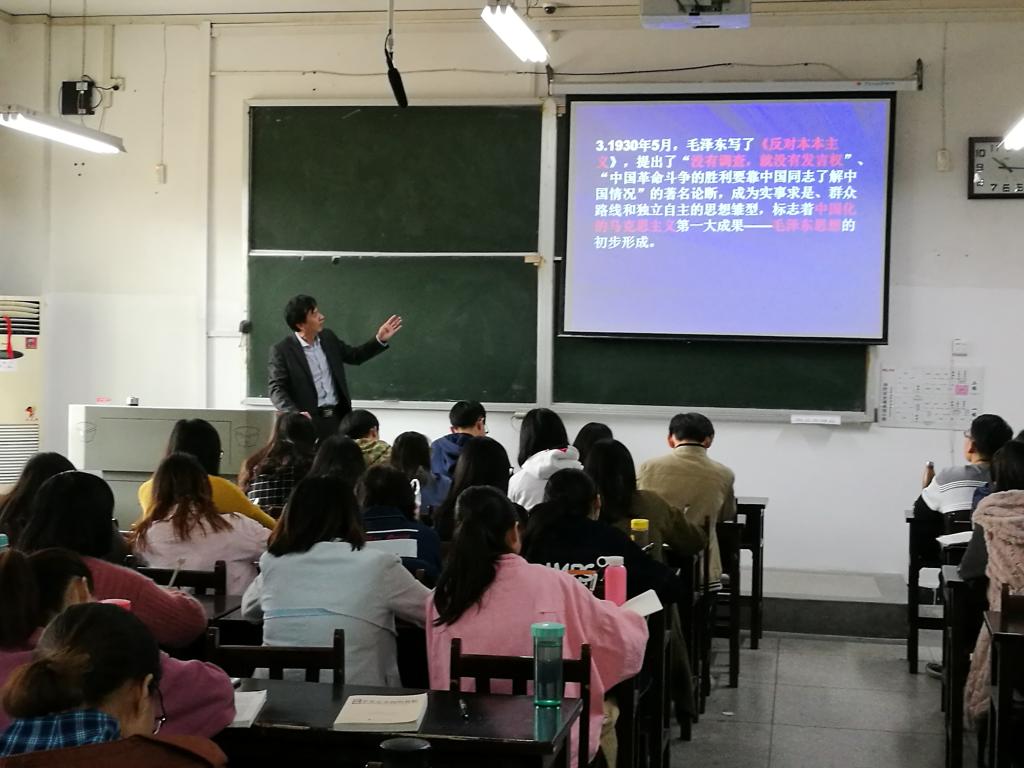 10月25日上午第3节课,我院院长徐方平教授在教3楼209教室为2015级思想政治教育专业60余名同学呈现了一堂精彩的中共党史课。院领导班子成员及20余名教师参与听课活动。