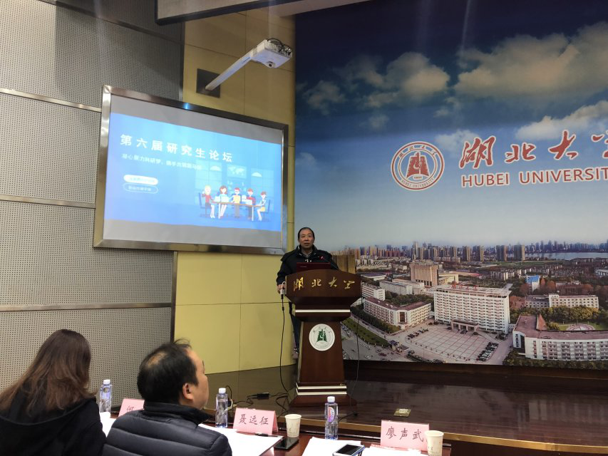 新闻传播学院院长廖声武教授在致辞中指出,这是两院第三次共同举办学术论坛,大家相互交流与学习,共同进步。研究生学术论坛对于研究生来说是一个很好的平台,让大家有一个很好的锻炼机会。同时廖声武院长对同学们提出了三点希望:希望同学们能充分利用论坛的平台展示出自身的研究成果,同时能够学以致用,多关注社会现象,研究社会问题;希望同学们能增强学习的自觉性,多阅读勤思考,开阔自身的视野,做好理论知识储备;希望同学们从学术论坛中受到启发,加强学习,提高自己的写作和研究水平,提升专业素养。