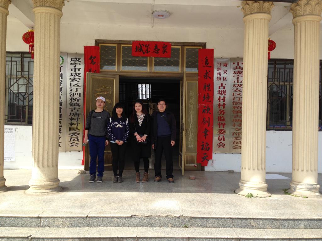 咸宁市咸安区汀泗桥镇古塘村村委会非常重视文化建设,多次邀请我院前往调研指导村文化建设。3月23日至26日,我院杨海军副教授、15级研究生曾空、16级研究生王书琪、张雅琪等深入古塘村,就古塘村文化建设问题展开专题调研。