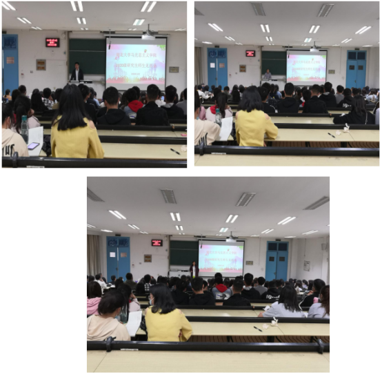 然后,院长徐方平发表讲话,祝贺119位博硕士新生的到来。徐院长从历史悠久,底蕴深厚,不断完善本院博硕学位点建设;教学科研成绩辈然,师资力量雄厚,在科研成果、社科立项方面硕果累累;服务社会,影响广泛,多位老师在教学实践中受到广泛认可等三个方面向2020级新生介绍了学院的发展历程和现状。在讲话最后,徐院长祝愿各位研究生在湖大马院出色完成学业,扣好人生的扣子,书写美好的人生华章。