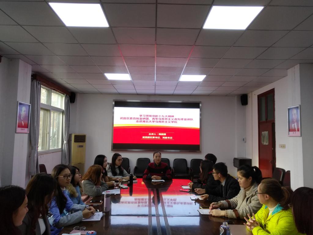 12月8日下午,武昌团区委书记、党组书记陈露露莅临我院,为学院学生党员做题为《青年马克思主义者的时代担当》的报告。院党委副书记王雄主持报告会。