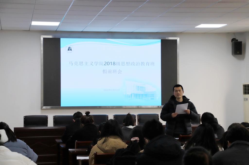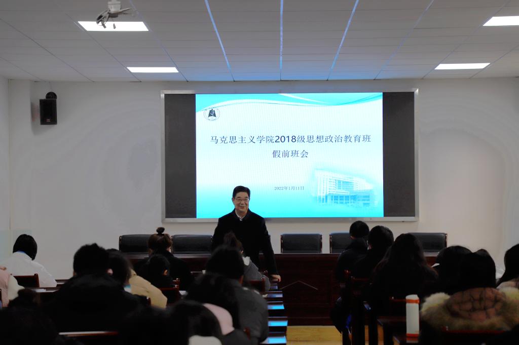1月11日下午,英国365集团2018级思想政治教育班举行主题班会,英国365上市公司副校长钱建国作为副班主任出席本次班会,2018级思政专业全体同学参加,班主任邹浩老师主持会议。