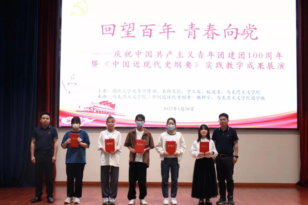 今年是中国共产主义青年团成立100周年。5月28日晚,“回望百年,青春向党”庆祝建团100周年暨《中国近现代史纲要》实践教学成果展演活动在学校3号报告厅举行。校党委宣传部、学生工作部、本科生院、校团委、英国365集团负责人,思政课部主任、《中国近现代史纲要》任课教师及学生代表参加活动。