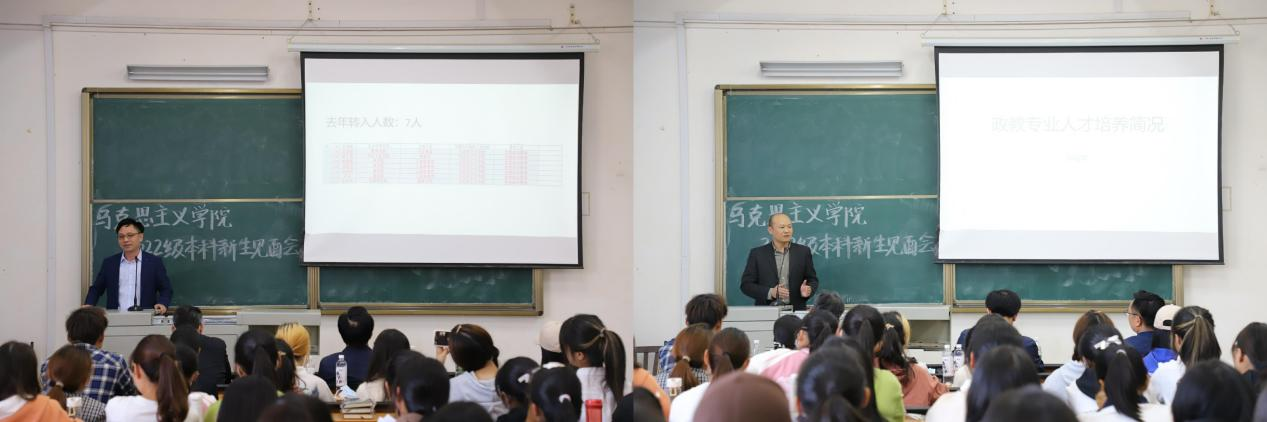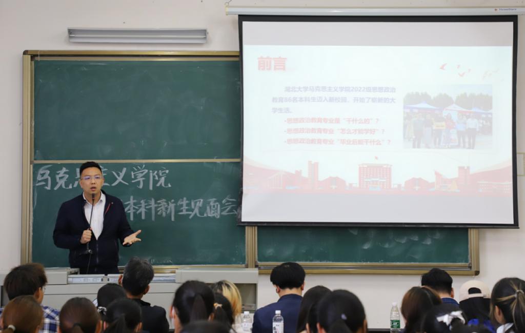 学院副院长徐信华、易振龙分别发言。他们从学院人才培养优势特色、学科建设成就等方面进行了详细介绍。他们表示,希望同学们依托学院学科专业优势平台,围绕“中学思政课骨干教师”的人才培养目标,研读专业经典,胸怀天下事,在学习生活实践中锻炼定力、磨砺心性,练就过硬的专业本领,成为专业英才。