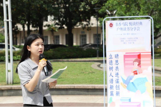 (通讯员祁丹悦 李璐瑶)春色恰如许,读书正当时。为响应2024“书香武汉·全民读书月”活动,营造健康文明的校园文化氛围,激发同学们对读书的兴趣,4月18日上午10:00,学科教学(思政)专场户外读书分享会在月亮广场举行。院党委副书记晏妮、硕士生导师陈晨、辅导员冷自衍、实习辅导员王瑨婧出席此次活动,23级学科(教学)思政专业全体学生参与本次活动。