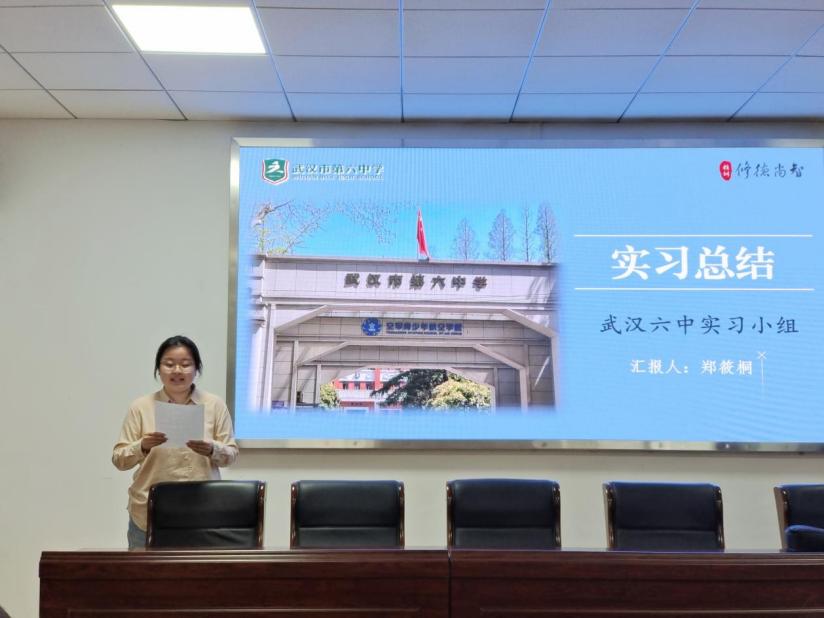 大会伊始,各实习小组汇报人提到听带教老师授课、集体备课、指导老师评课、小组成员互评的环节,表示从中受益匪浅。随后,汇报人也分享了指导老师对自己教育教学、拟写调研报告的悉心指导。除了授课,学生们还以实习班主任的身份参与到班级管理当中。许多小组在汇报中都提到了一开始在班级管理方面存在困难,但随着一步步深入班级、了解学生,问题也都迎刃而解。